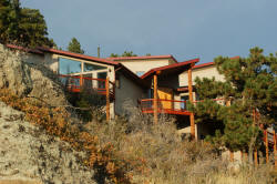 Perched beneath large stone outcroppings, Carmon's home and studio is a